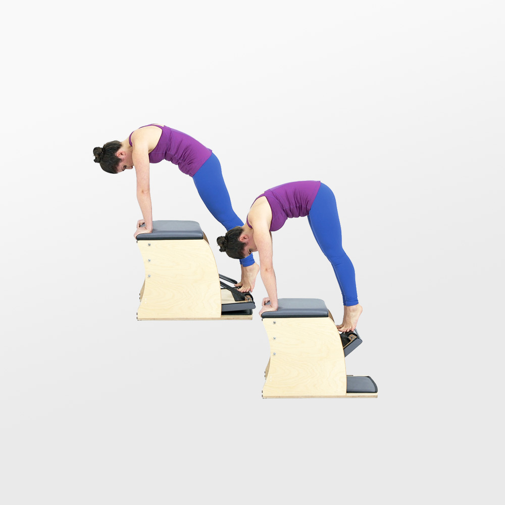 The Wunda Chair, “the silent artist”, has its built-in quirks. For one, it’s not readily modifiable beyond the spring resistance, which means that there is only so much to adjust to make this controlled catapult work—it’s really up to the moving body to find that ever-elusive (yet ever-essential) “in & up”. But the good news is that most of the magic happens in the initial unweighting of the pedal. Lift it by a hair in the proper setup and with control, and you’ve accomplished the exercise; then you have a lifetime to get it to “party trick” level, but remember: Pilates isn’t about performing “party tricks” 😉